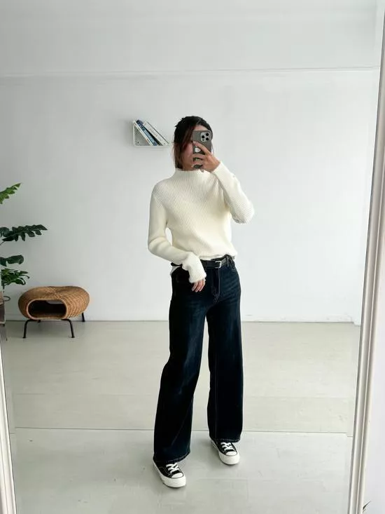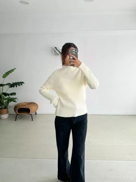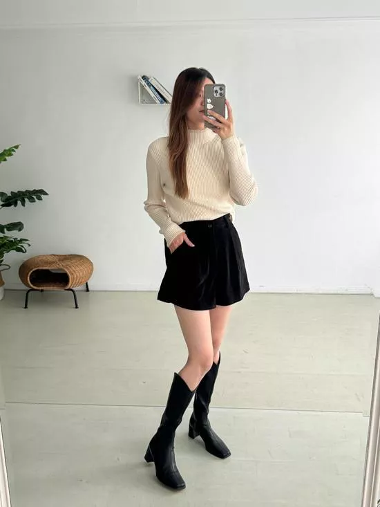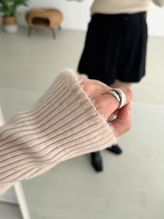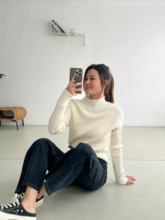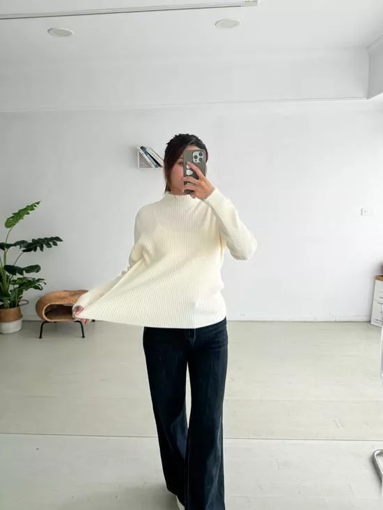 小立領毛邊坑條打底衣