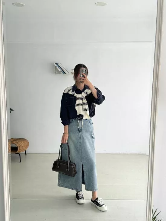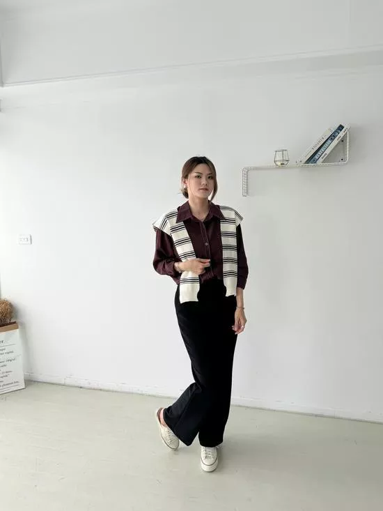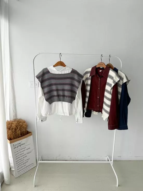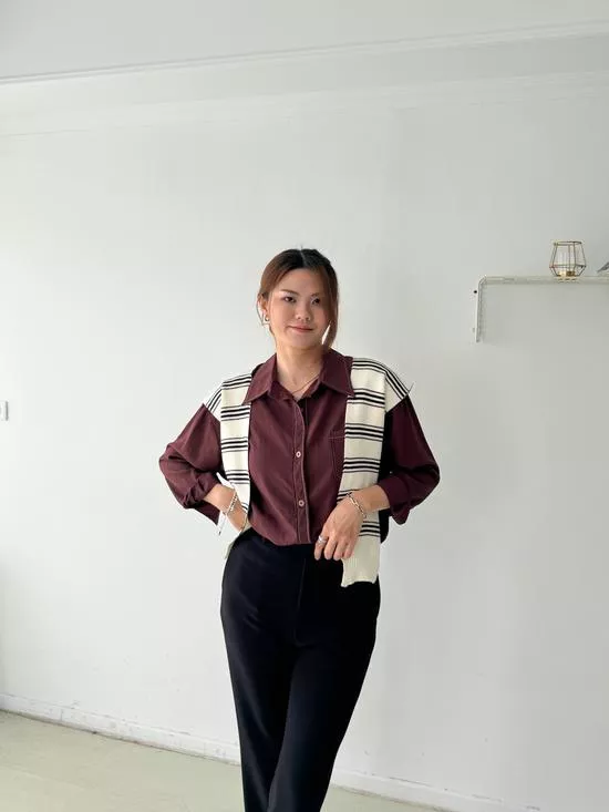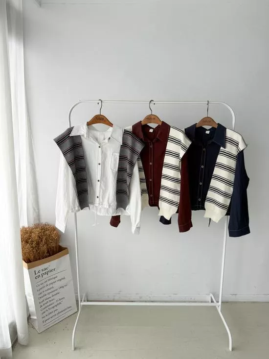 條紋披肩車線襯衫