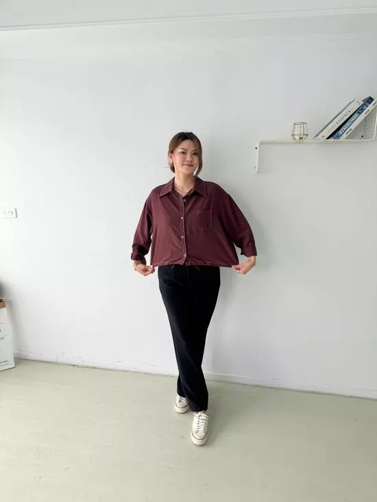 時髦附腰繩斜肩上衣