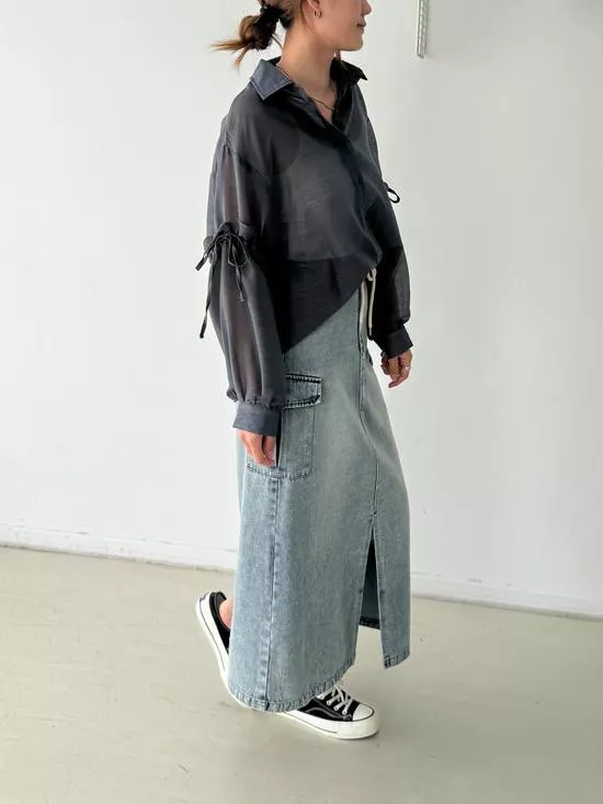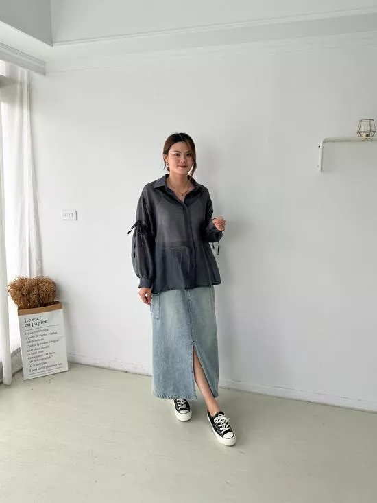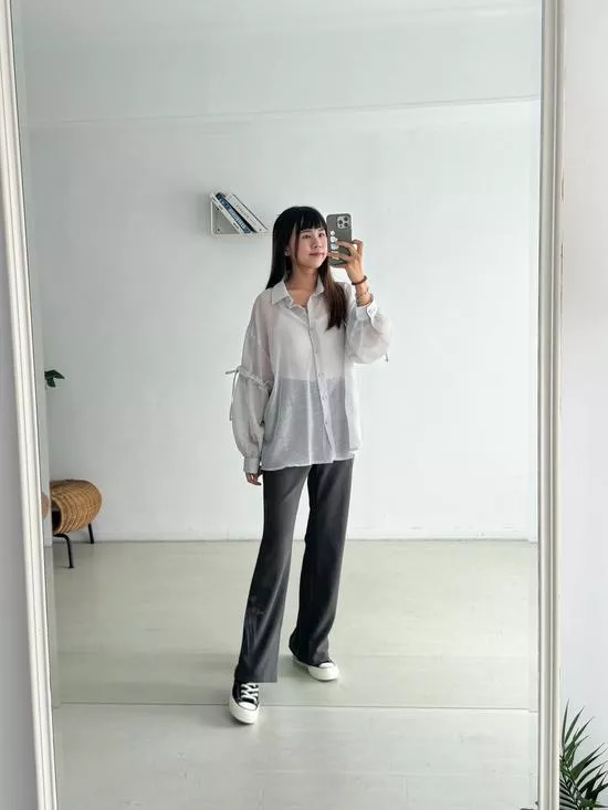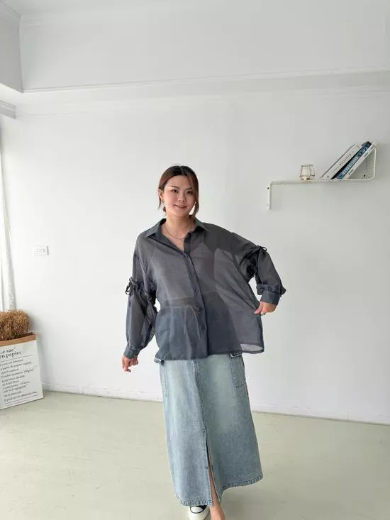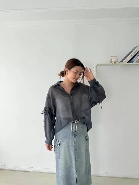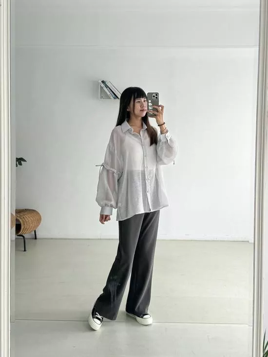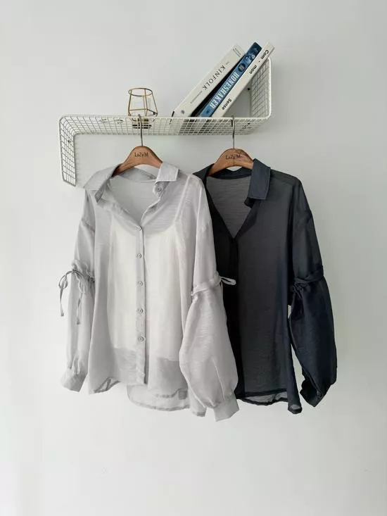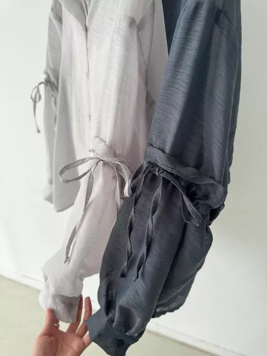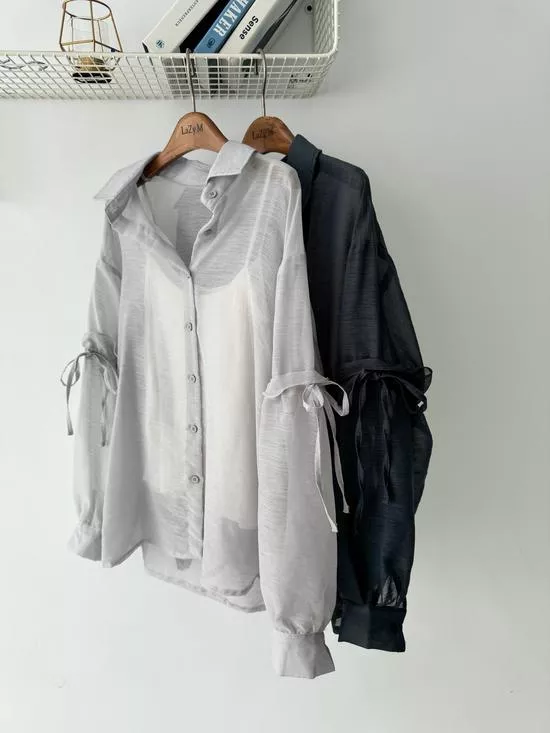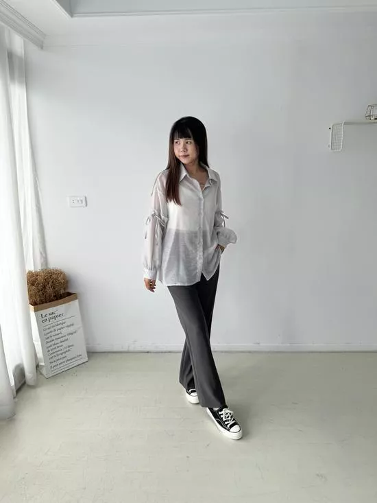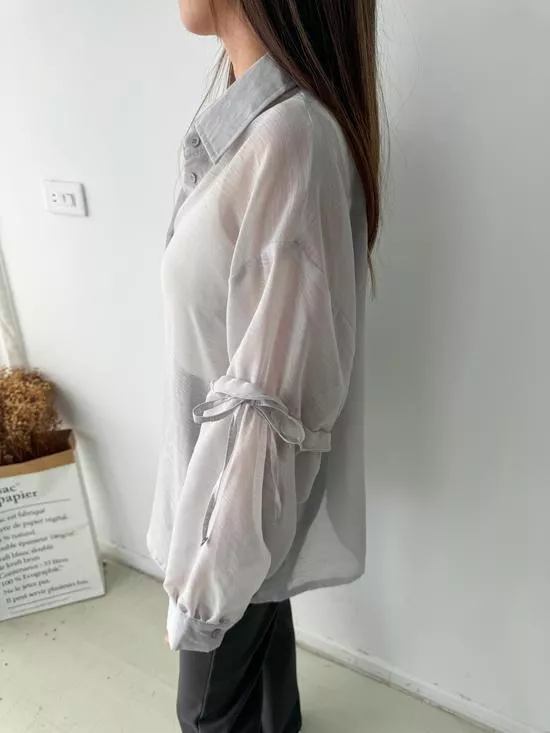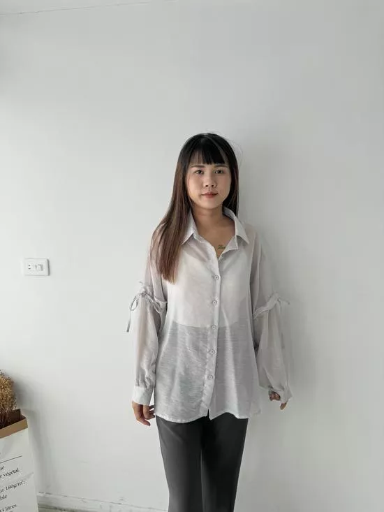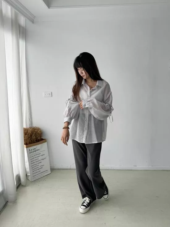 澎袖綁帶造型襯衫