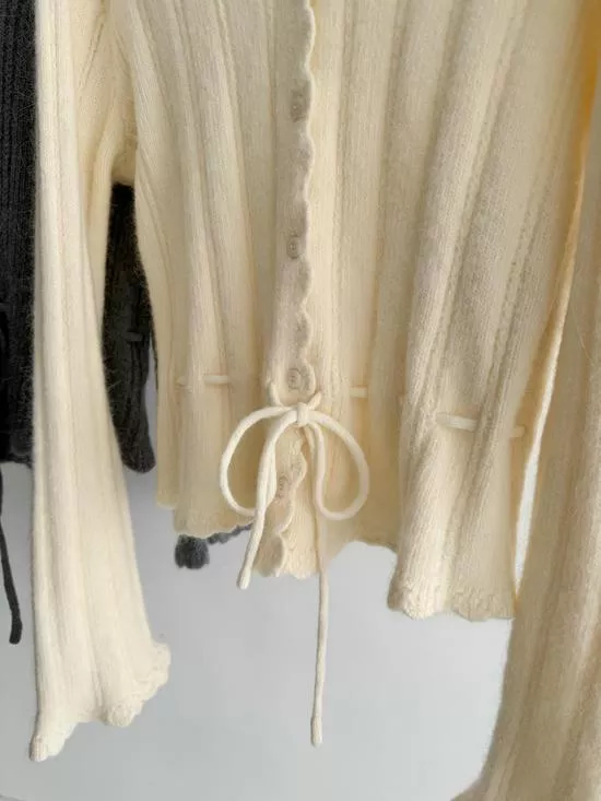 美翻~V領緹花綁帶上衣