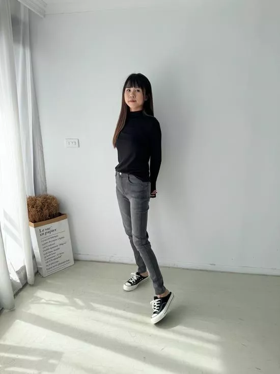 刷破彈力窄管黑褲