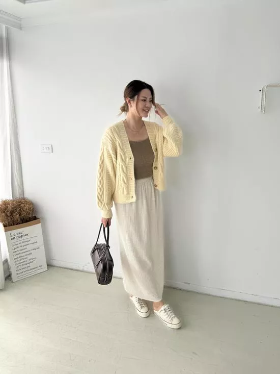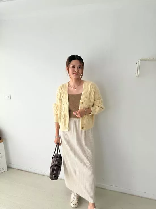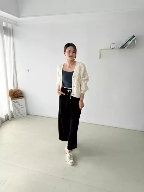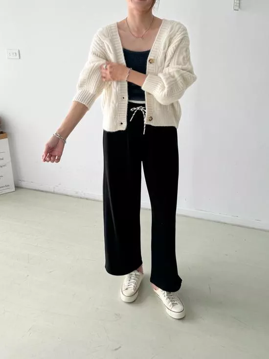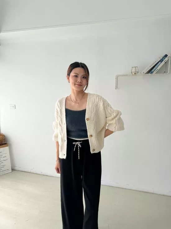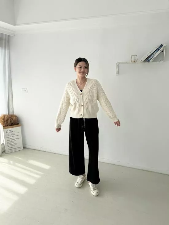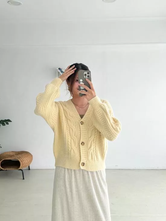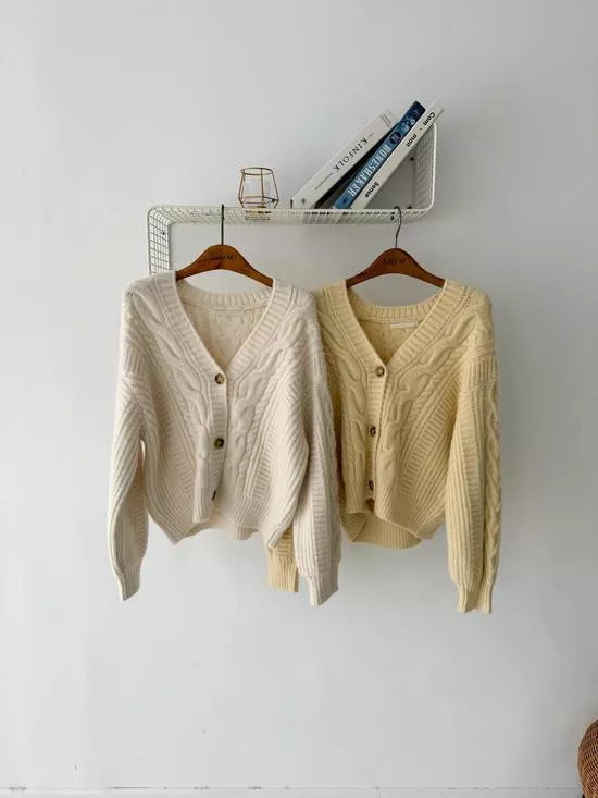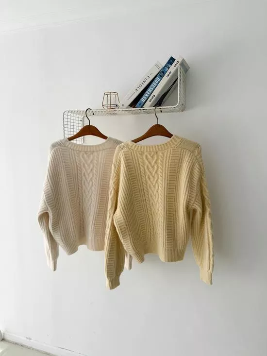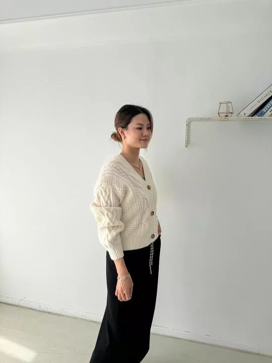 麻花V領短版針織外套