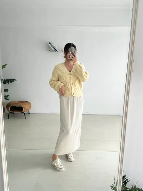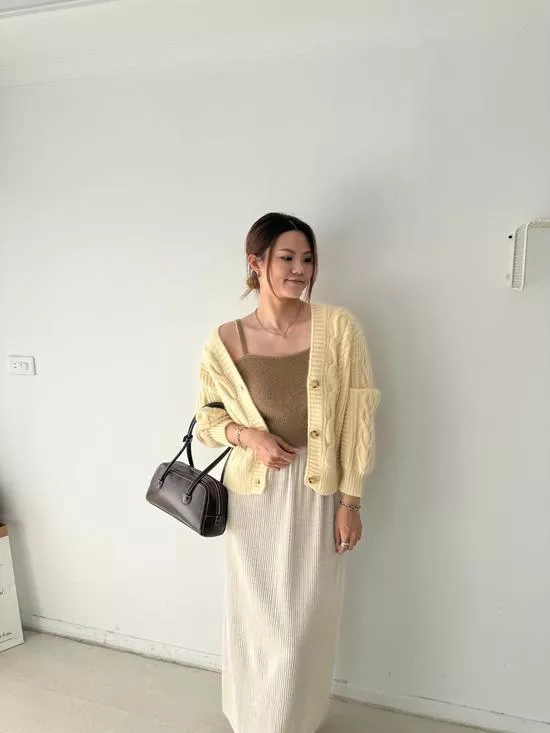 波浪領排釦針織衫