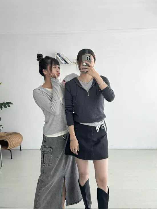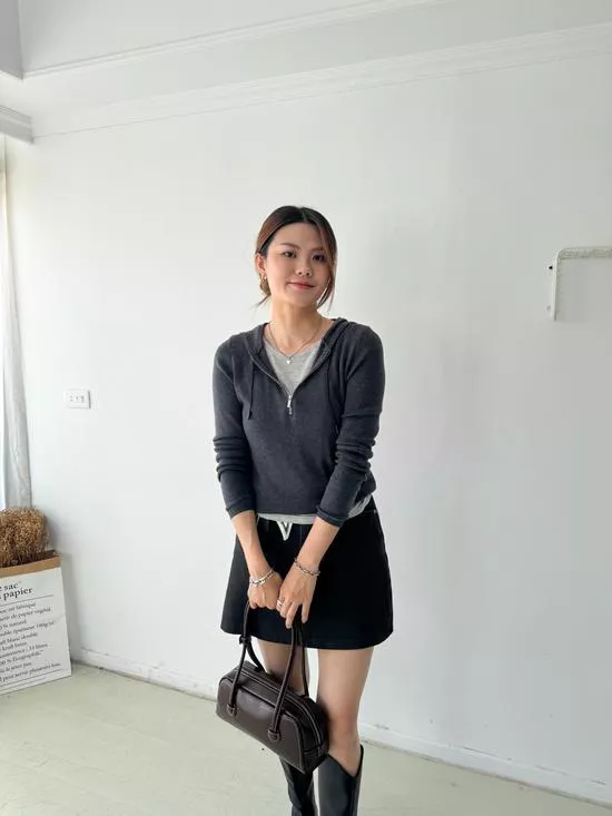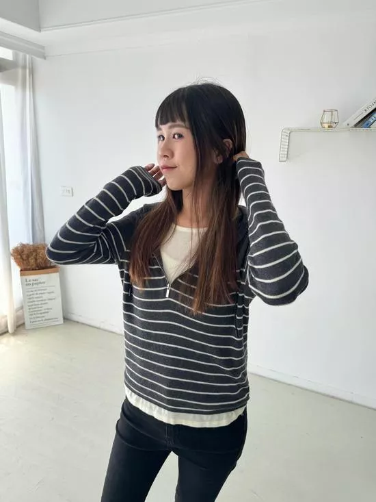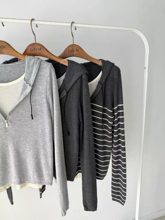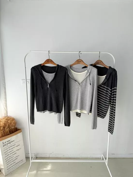 假兩件連帽針織衫