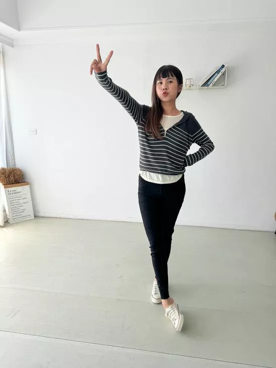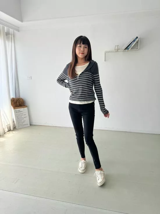 刺繡條紋假兩件上衣