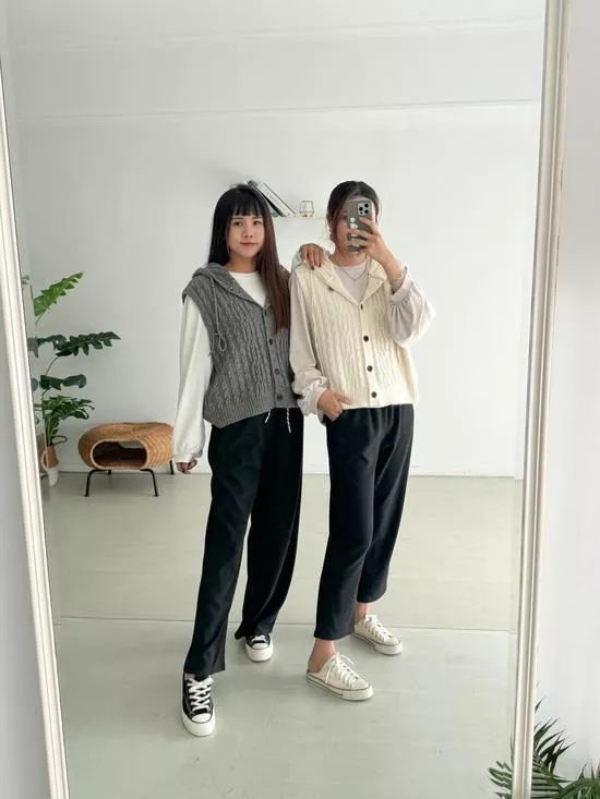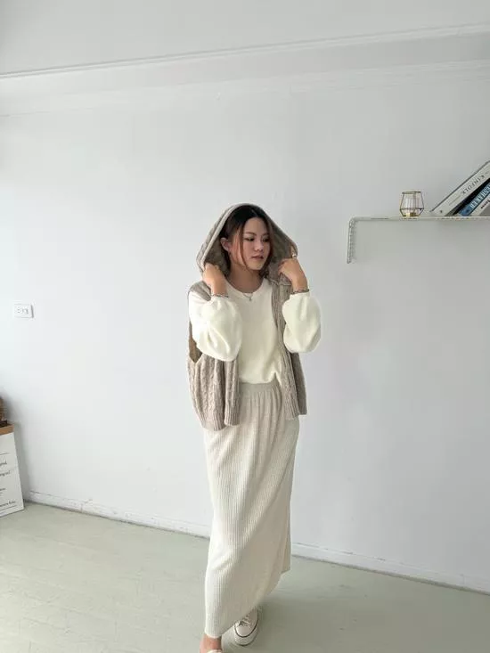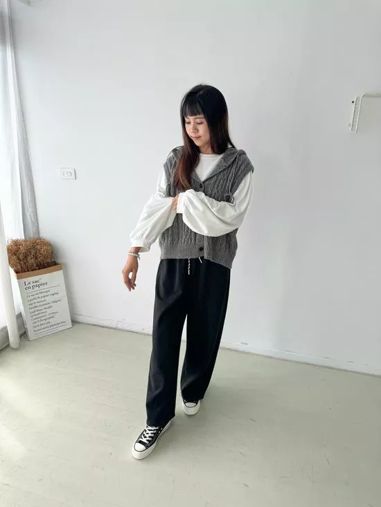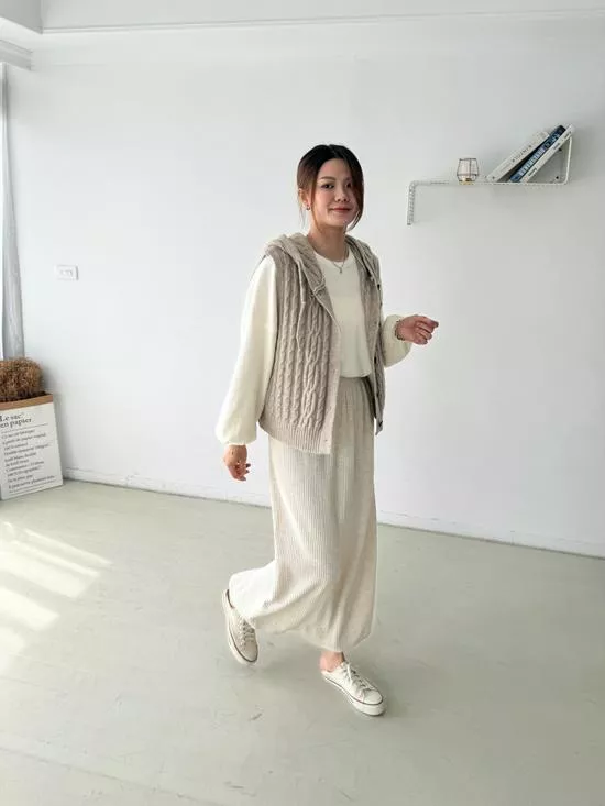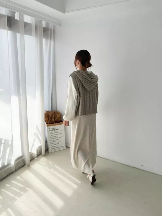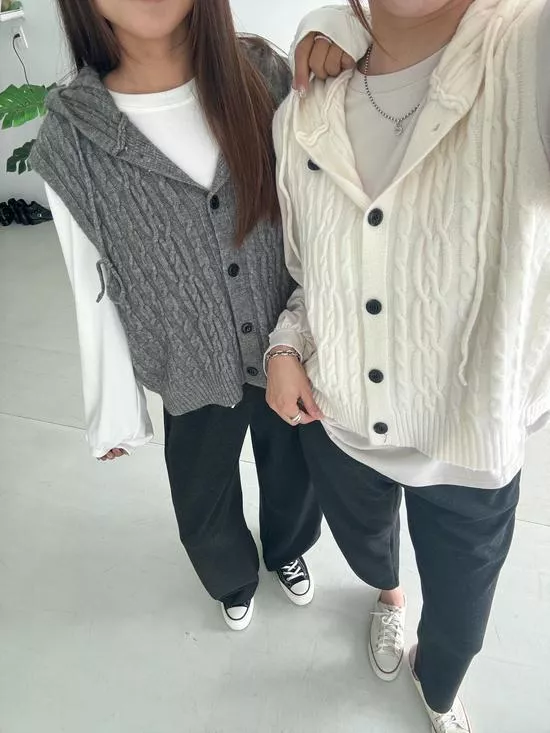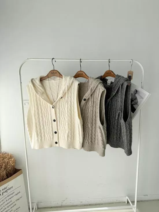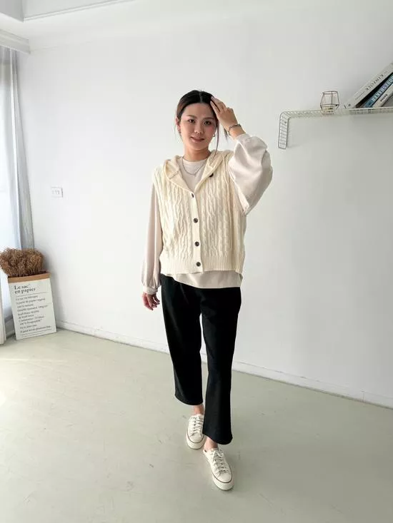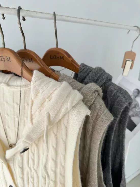 連帽麻花針織背心