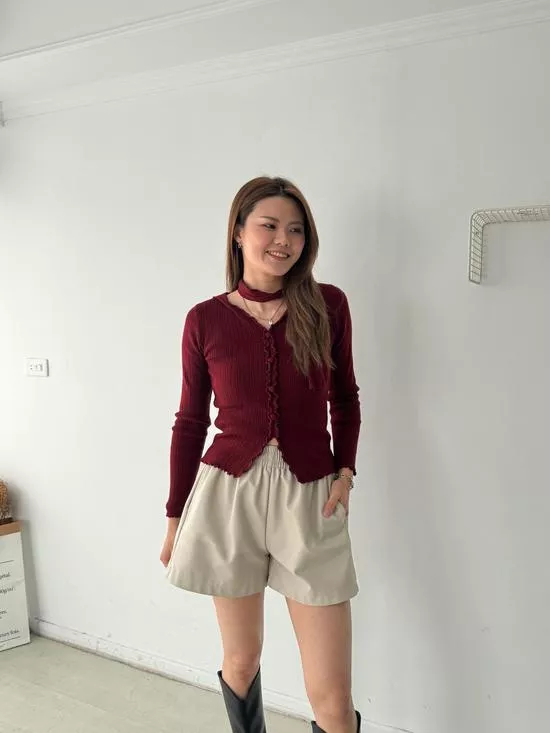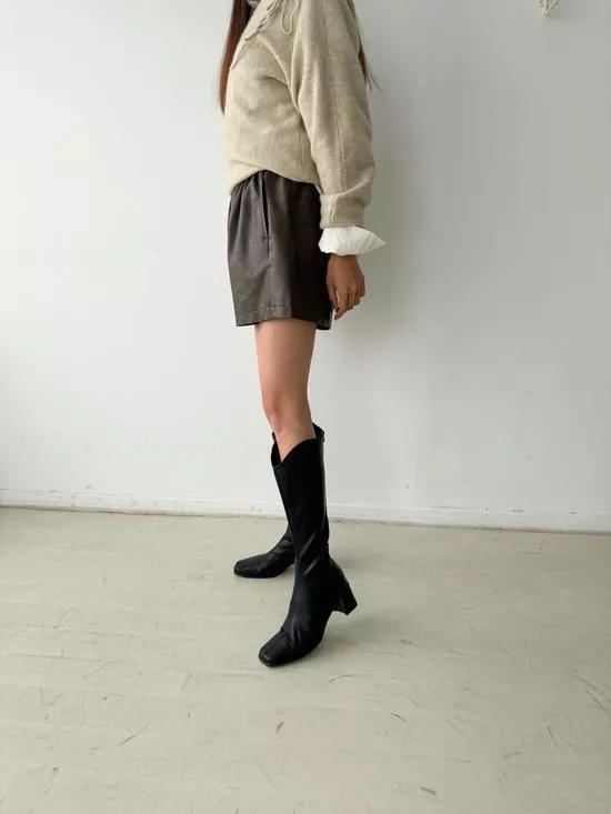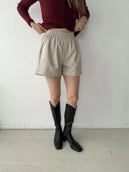 百搭鬆緊皮革短褲