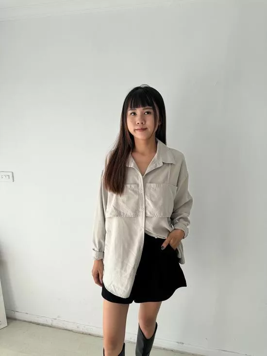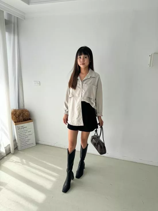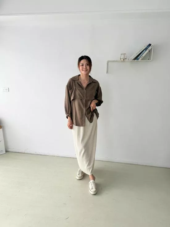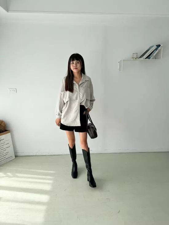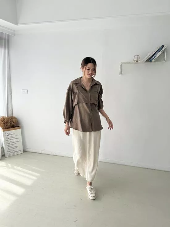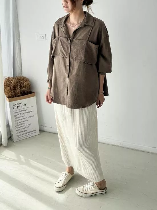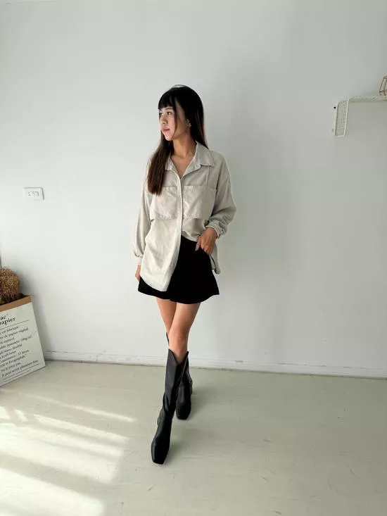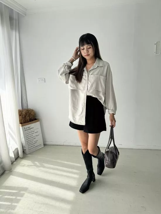 假兩件蜜桃絨襯衫