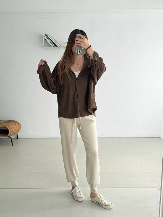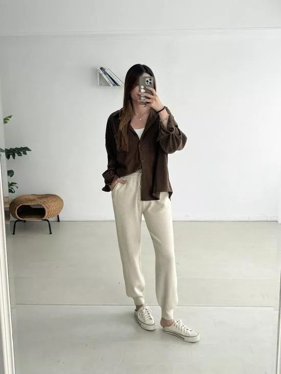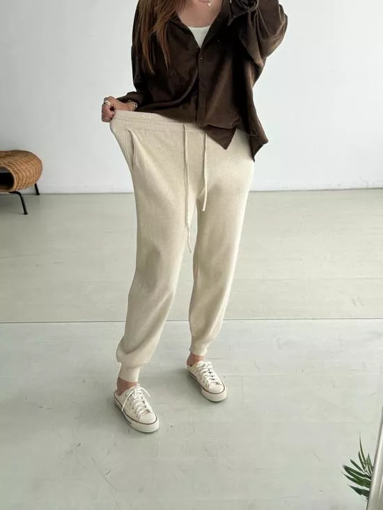 下縮口抽繩針織褲