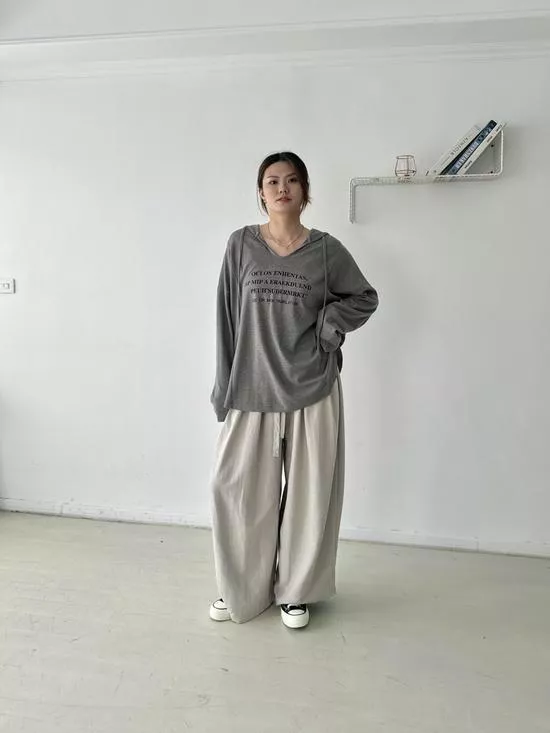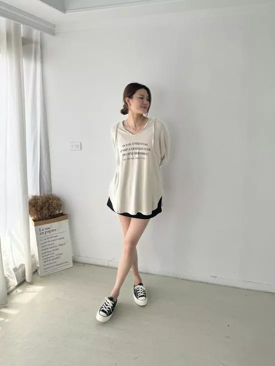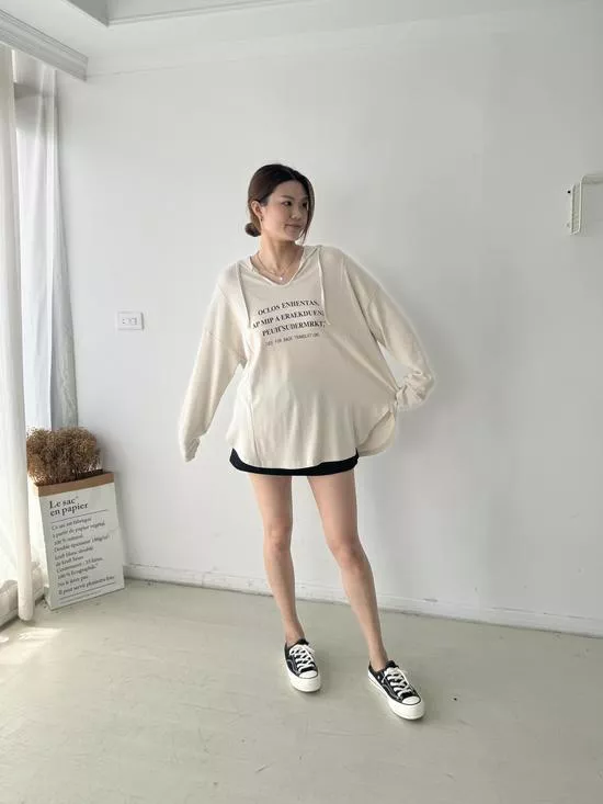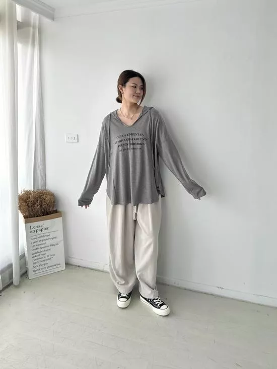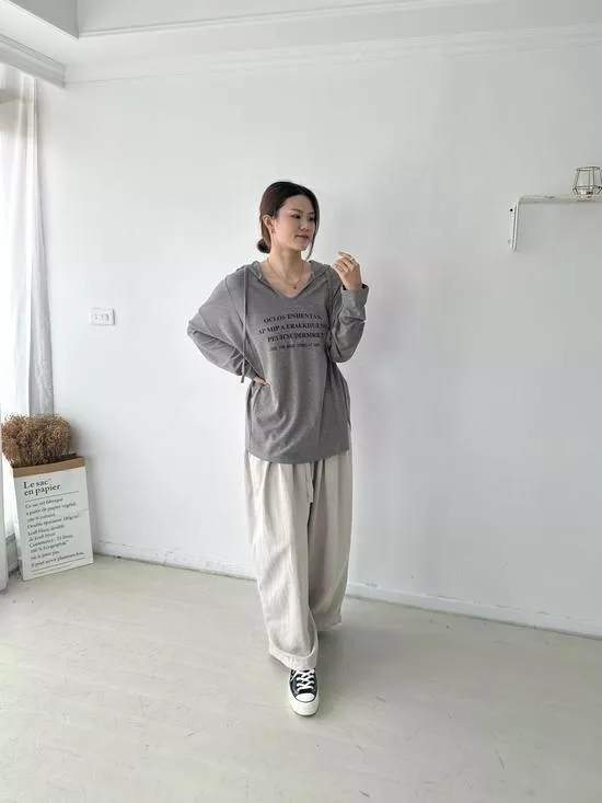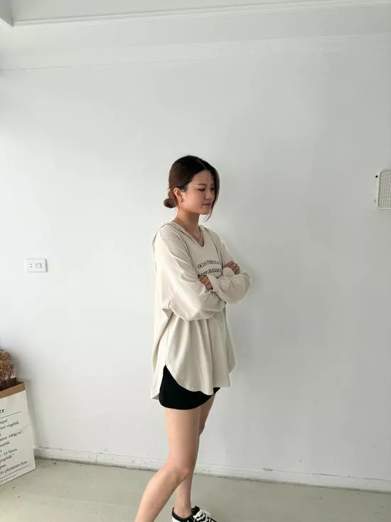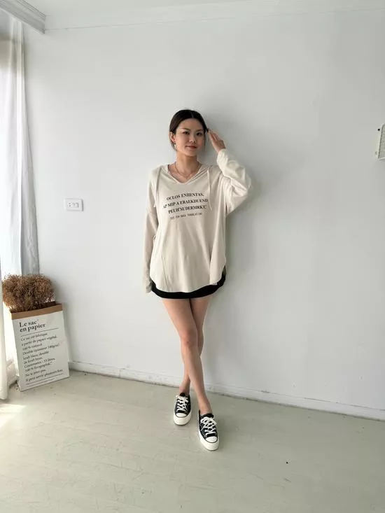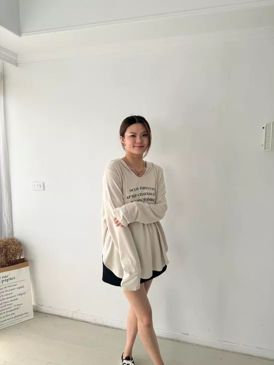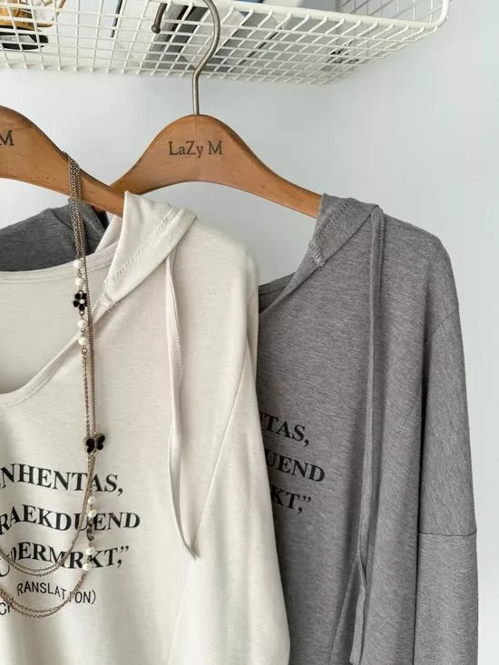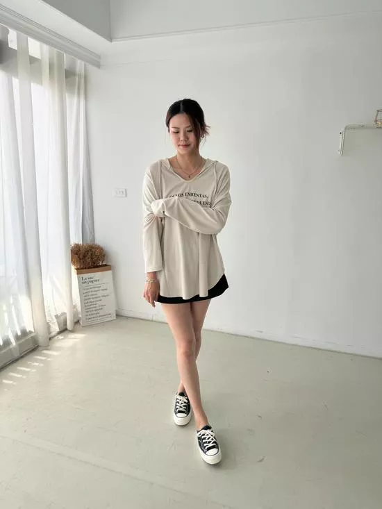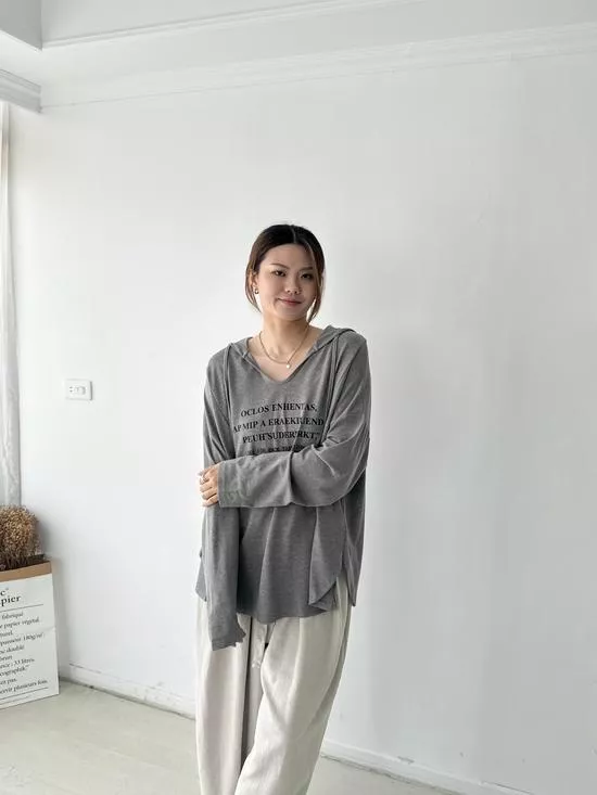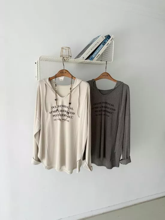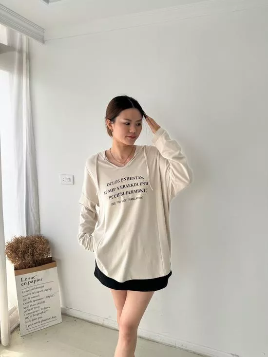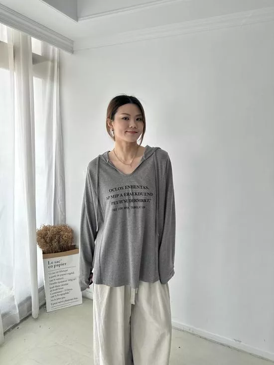 連帽V領英字上衣
