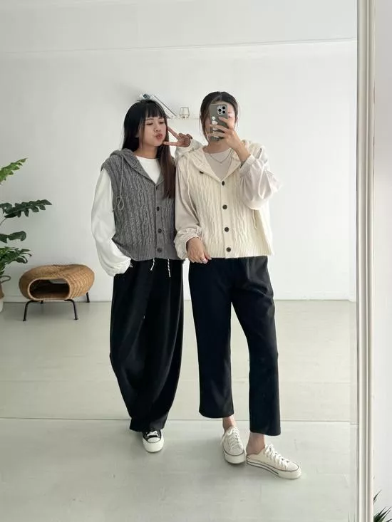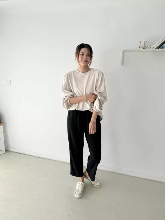 不挑人穿~糯米抽繩寬褲