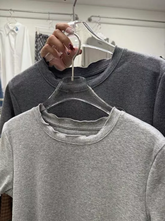圓領捲邊素面上衣
