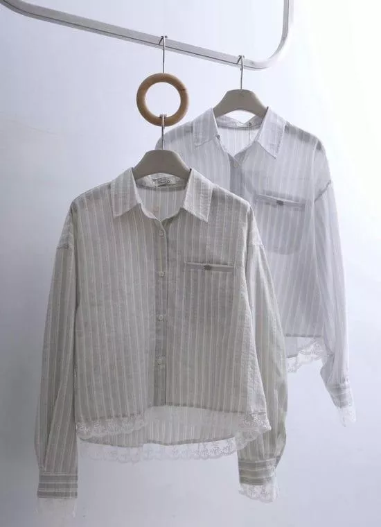 蕾絲拼接直紋短版襯