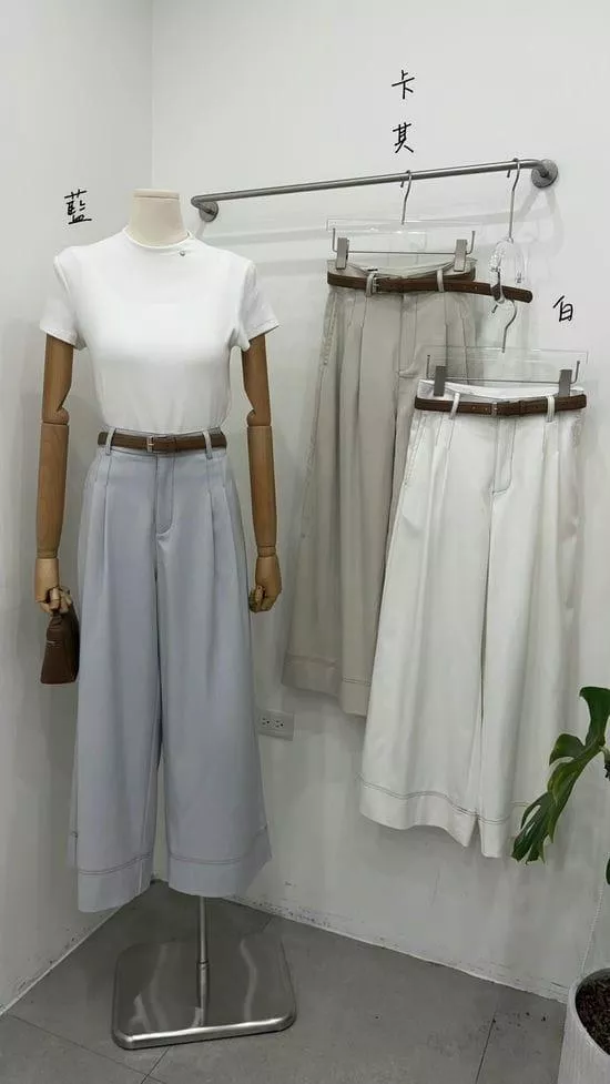質感附皮帶打摺西褲