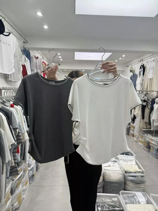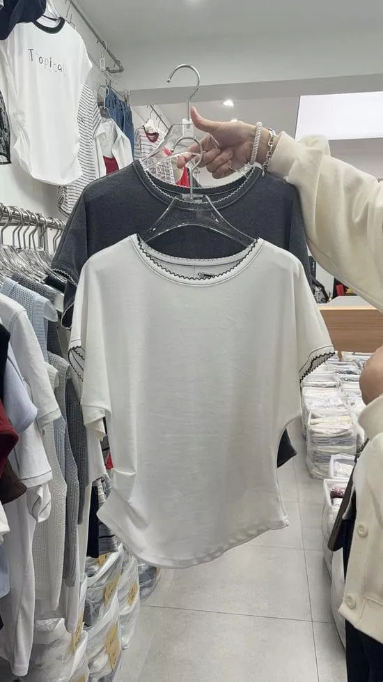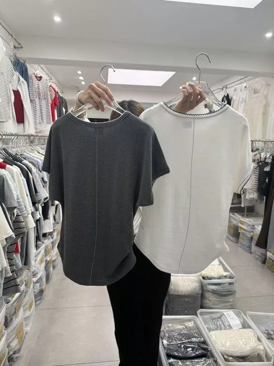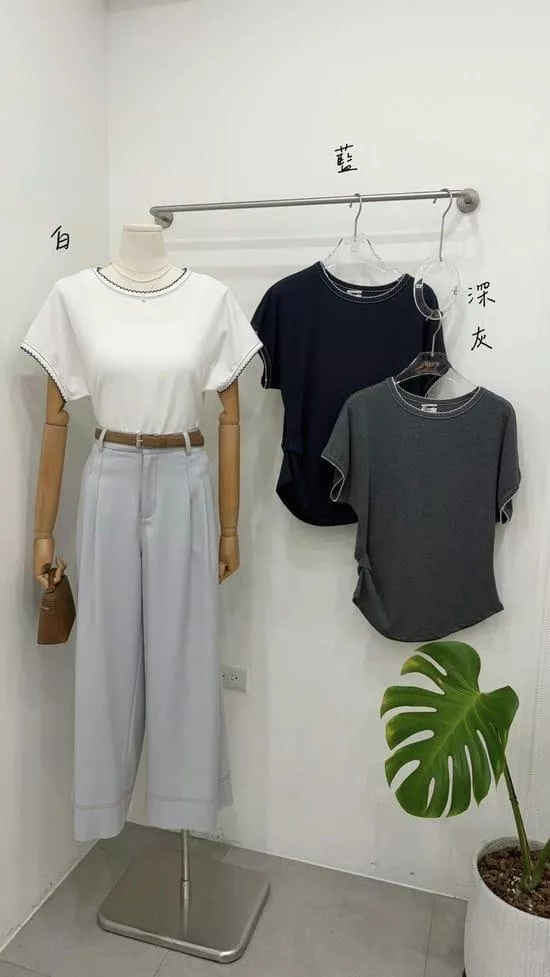 圓領捲邊素面上衣